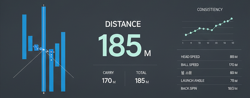 캐리가 일정해야 실제 필드에서도 거리 맞추기가 쉽고, 런은 바운스·그린 상태·날씨에 따라 많이 달라지기 때문에 연습 단계에서는 “참고용” 정도로만 보면 됩니다.
